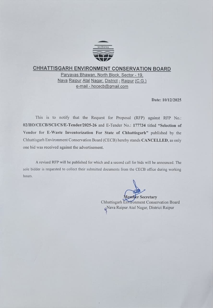 All efforts have been made to make the information as accurate as possible, Chhattisgarh Environment Conservation Board, will not be responsible for any loss to any person caused by inaccuracy in the information available on this Website. Any discrepancy found may be brought to the notice of Chhattisgarh Environment Conservation Board.